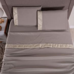 Jogo De Lençol Zurique Casal 4 Peças Micro Percal 400 Fios Friso Decorativo - Bege