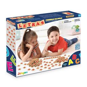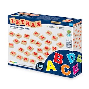 Letras da Junges com 160 peças em madeira de reflorestamento (MDF) 6mm, tamanho de 3x3cm impressas em serigrafia, com letras maiúsculas e acentos gráficos do alfabeto português. Contém 4 alfabetos completo mais letras extras / vogais e acentos gráficos. Ideal para alfabetização. Formando Palavras! Embalagem: caixa litografada