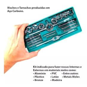 O Jogo Macho E Tarracha pode ser usado em metal mole, alumínio, PVC, madeira, plástico, latão, bronze e entre outros.