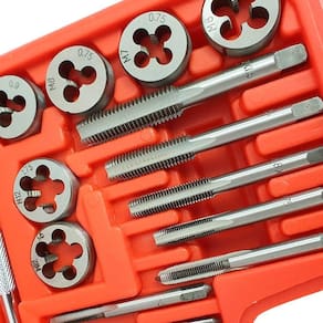 - 17 tarraxas para metal: m3 x 0,6 - m4 x 0,75 - m5 x 0,9 - m6 x 0,75 - m7 x 0,75 - m8 x 1 - m10 x 1,25 - m12 x 1,5 - m3 x 0,5 - m4 x 0,7 - m5 x 0,8 - m6 x 1 - m7 x 1 - m8 x 1,25 -m10 x 1,5 - m12 x 1,75 - 1/8 npt
