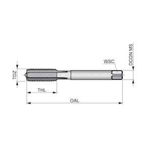 Jogo de machos seriados de canal reto NO9 para Rosca Métrica Fina ISO M10 com 1.00 mm por passo e classe de tolerância 6H, consistindo em 1 macho com um perfil de rosca truncado e chanfro de entrada 3.5-5xP e 1 macho com um chanfro de entrada 2-3xP, dimensões de acordo com padrão DIN 2181 com haste 7.0mm e quadrado de arraste 5.5mm, feito em HSS com acabamento brilhante para rosqueamento em furo cego ou passante 1.5xD em usinagem de aço carbono e metais não-ferrosos.