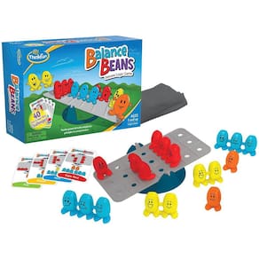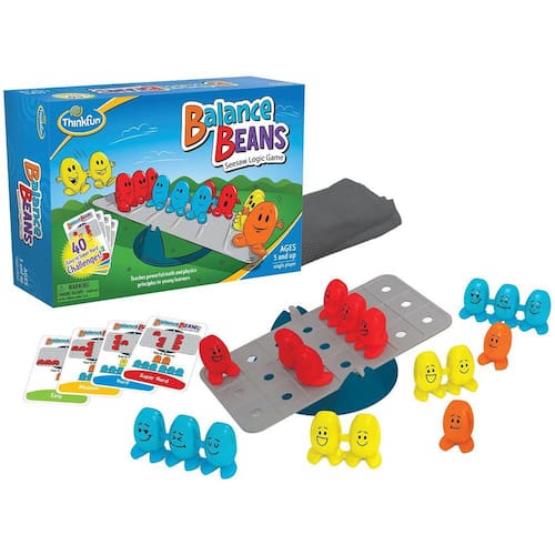 Equilibrar feijões é um jogo lógico e matemática tudo em um. Configure os feijões vermelhos de acordo com o cartão de desafio. Em seguida, coloque cuidadosamente os grãos coloridos na gangorra para evitar que ele fique cambaleando. Quando você equilibra a gangorra, você está realmente equilibrando uma equação! à medida que os desafios ficam mais difíceis, você vai confiar menos em tentativa e erro – e mais em habilidades matemáticas e de raciocínio. Este jogo de lógica cheio de feijão é uma maneira divertida de introduzir jovens aprendizes à álgebra elementar.