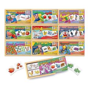 Brinquedos que ensinam, educam e divertem10 jogos de memória caixa e peças em madeira- jogo de memória alfabetização com objetos- jogo de memória português inglês- jogo de memória brinquedos- jogo de memória frutas e hortaliças- jogo de memória meios de transporte e comunicações- jogo de memória profissões- jogo de memória números e quantidades- jogo de memória animais- jogo de memória alfabetização com animais- jogo de memória animais e filhotes.Descrição cada jogo:Uso: a criança espalhará o jogo sobre a mesa com as figuras viradas para cima.Numa etapa inicial, procurará os pares classificando-os.Em etapa avançada, poderá voltar as figuras viradas para baixo que são pinçadas uma a uma formando os pares.Ótimo estímulo e entretenimento para trabalho em grupo ou individual.Desenvolve: atenção, concentração, memorização imediata, percepção dos detalhes, organização espacial.Idade: a partir dos 4 anos.Composição: jogos de memória educativos, selecionados dentre os temas mais importantes na educação atual impressos em transfer brilhantes em fibro madeira.Acondicionados em caixa de madeira medindo 3,5x12x22cm.Contendo 40 peças medindo 5 x 5 x 0,4 cm.Certificado inmetroCe-bri/icepex - n 00928-9Homologação Inmetro: CE-BRI/IQB 002320 54590/21-021 Marca: Mundo Feliz