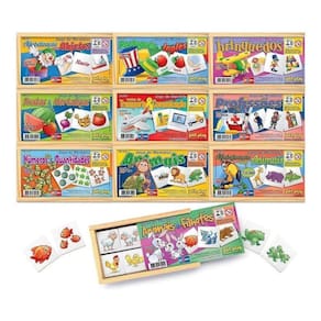 10 jogos de memória caixa e peças em madeira