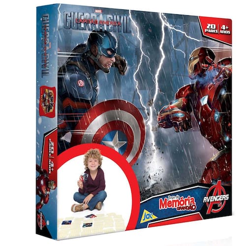 Seu filho irá se divertir com o Jogo de Memória Toyster Grandão Capitão América - 40 Peças! Uma jogada consiste em virar uma carta, depois outra. Todos os jogadores vêem as cartas que foram viradas. Se elas forem iguais, retire-as da mesa e separe. No final das cartas soma-se quem fez a maior pontuação.