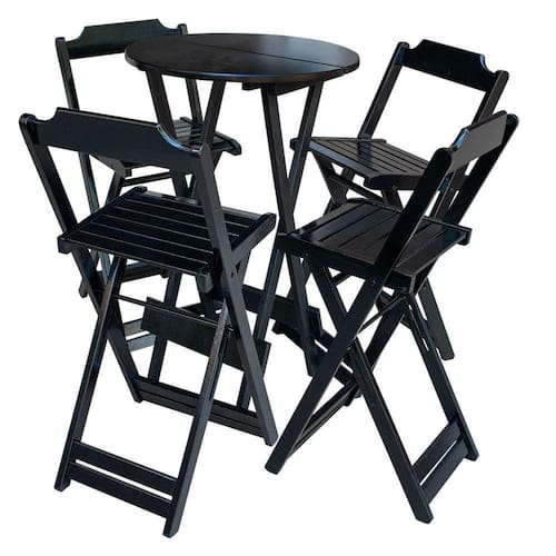 Jogo De Mesa Bistrô De Madeira Com 4 Cadeiras Dobravel Preto - Preto