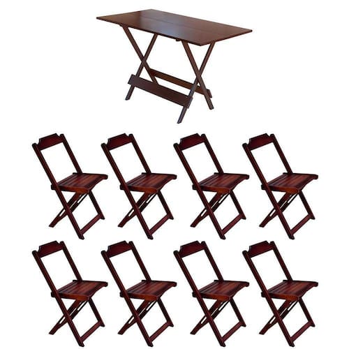 Jogo De Mesa Dobrável 1,20x70 Em Madeira Maciça Com 8 Cadeiras - Imbuia - Cor: Marrom