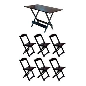 Jogo De Mesa Dobrável 120x70 Em Madeira Padrão C/6 Cadeiras - Tabaco - Cor: Marrom