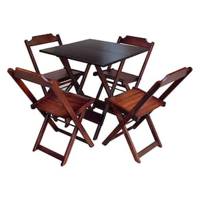Jogo de Mesa Dobrável 70x70 em Madeira Maciça com 4 Cadeiras - Caramelo Escuro - Marrom