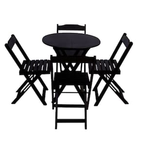 Jogo De Mesa Dobravel Com 4 Cadeiras Tampo Redondo 70x70 Preto é ideal para bares, restaurantes, estabelecimentos, áreas de lazer e tambem para sua casa. Feito em madeira maciça, tornando resistentes e duráveis. Seu design permite que seja encaixado em qualquer ambiente, trazendo um toque a mais para seu estabelecimento. Além de sua durabilidade, o que lhe trará conforto para servir seus clientes. Por ser dobrável torna-se mais fácil guardar, manusear e limpar o produto. Atenção: EVITE USAR PRODUTOS ABRASIVOS E QUíMICOS PARA LIMPEZA DO PRODUTO, aconselha-se o uso de pano umedecido para melhor conservação; mantenha o produto fora de chuva e sol constantes