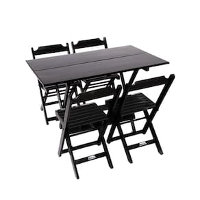 Jogo de Mesa Dobravel de Madeira 1,20x70 com 4 Cadeiras Preto - Preto