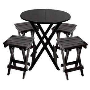 Jogo de Mesa Dobrável de Madeira 60cm Redondo com 4 Banquinhos Dobráveis Preto