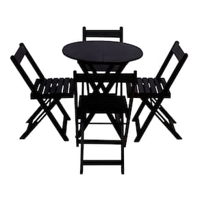 Jogo de Mesa Dobrável de Madeira 60cm Redondo com 4 Cadeiras Preto