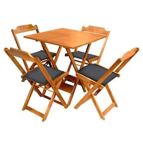 Jogo De Mesa Dobravel De Madeira 60x60 Com 4 Cadeiras Natural Estofado PretoTenha um pacote completo de praticidade e conforto com este conjunto, ideal para restaurantes, bares, estabelecimentos comerciais, áreas de lazer ou até mesmo para sua casa. Feito em madeira maciça, resistente e durável. Seu design permite que seja encaixado em vários ambientes trazendo um toque estético a mais ao mesmo. Além de estética, este conjunto de mesas e cadeiras também garante praticidade de locomoção dos produtos, longa durabilidade e estofamento confortável.ATENçãO: EVITE USAR PRODUTOS ABRASIVOS E QUíMICOS PARA LIMPEZA DO PRODUTO, aconselha-se o uso de pano umedecido para melhor conservação; mantenha o produto fora de chuva e sol constantes.Matéria prima:Madeira Maciça, de alta densidade e resistente.Sua variação de tonalidades é uma característica típica desta madeira, podendo apresentar diversos tons num mesmo produto em harmonia com o brilho do verniz.Modelo: Dobrável com Cadeiras Dobráveis estofadasCor: NaturalCor do Assento: PretoDimensões (Mesa): Altura 90cm / Largura 60cm / Profundidade 60cm Dimensões (Cadeiras): Altura 88cm / Largura 43cm / Profundidade 33cmJogo de Mesa Dobravel de Madeira 60x60 com 4 Cadeiras Natural Estofado Preto