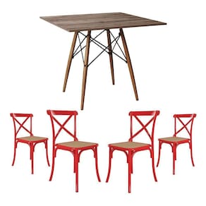 Jogo De Mesa Eiffel Quadrado Tampo De Madeira 90cm Amêndoa Com 4 Cadeiras Katrina Vermelha Assento B