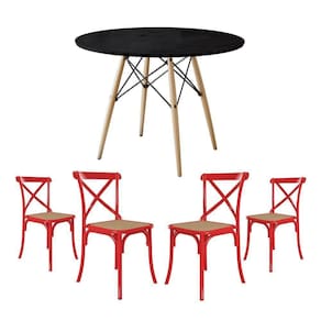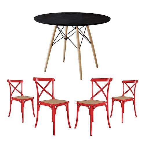 Jogo De Mesa Eiffel Redondo Tampo De Madeira 110cm Preto Com 4 Cadeiras Katrina Vermelha Assento Beg