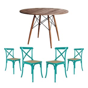 Jogo De Mesa Eiffel Redondo Tampo De Madeira 90cm Amêndoa Com 4 Cadeiras Katrina Azul Turquesa Assen