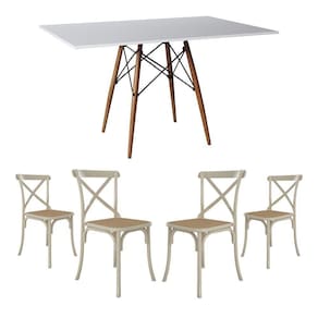 Jogo De Mesa Eiffel Retangular Tampo De Madeira 120x75cm Branco Com 4 Cadeiras Katrina Off White Ass