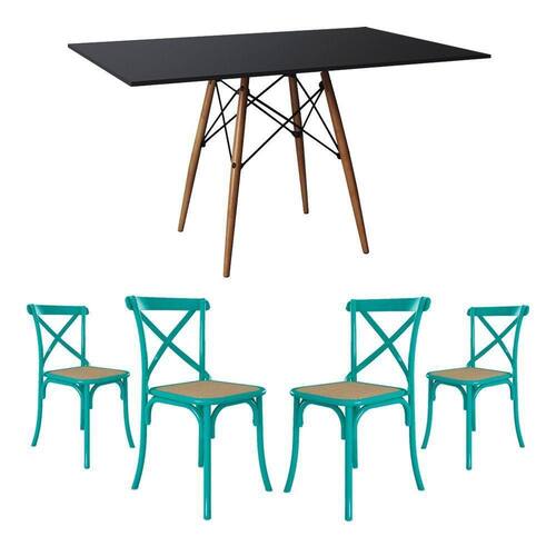 Jogo De Mesa Eiffel Retangular Tampo De Madeira 120x75cm Preto Com 4 Cadeiras Katrina Azul Turquesa
