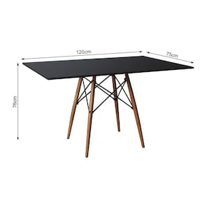 Jogo De Mesa Eiffel Retangular Tampo De Madeira 120x75cm Preto Com 4 Cadeiras Katrina Azul TurquesaA sua cozinha ou sala de jantar ficará completa com esse lindo Conjunto de Mesa e Cadeiras! Contendo um design de móveis moderno, elegante e com uma ousada combinação de cores, esse é um kit que certamente é uma solução que esbanja estilo, elegância e muito requinte.O conjunto tem em sua diversificada estrutura de materiais com altíssima qualidade, que proporciona muito mais resistência, mesmo com o passar dos anos, e com seus 4 assentos Katrina Aço é ideal para um jantar em família sem abrir mão do conforto. O Kit acompanha versatilidade e combina com vários tipos de decoração, o que dá mais praticidade em sua casa.Informações técnicas Conjunto:Conteúdo da Embalagem: 01 Mesa e 04 Cadeiras (Embalados Separadamente).Instruções/Cuidados: Limpar com pano seco ou levemente umedecido com água.Necessita de Montagem? Sim.Mesa:Modelo: Eiffel WoodTipo: RetangularCor do tampo: PretoCor da base dos pés: Wood (Madeira)Material do tampo: Madeira Material dos pés: MadeiraDimensões: Altura: 76 cm // Largura: 120 cm // Profundidade: 75 cm Cadeiras:Modelo: KatrinaCor: Azul Turquesa e BegeMaterial da estrutura: Aço com Pintura E-PoxMaterial do assento: Espuma D14 com Revestimento em Corano.Dimensões: Altura: 90 cm // Largura: 50 cm // Profundidade: 55 cmJogo de Mesa Eiffel Retangular Tampo de Madeira 120x75cm Preto com 4 Cadeiras Katrina Azul Turquesa