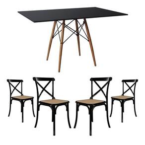 Jogo De Mesa Eiffel Retangular Tampo De Madeira 120x75cm Preto Com 4 Cadeiras Katrina Off White Asse