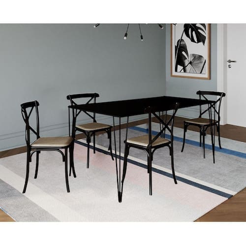 Jogo De Mesa Elen Retangular Tampo De Madeira 140X80Cm Preto Com 4 Cadeiras Katrina Pretoo Be
