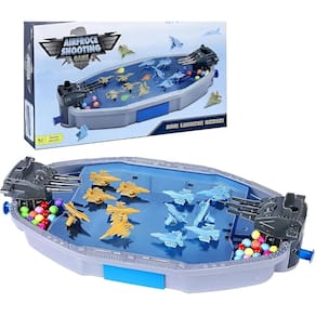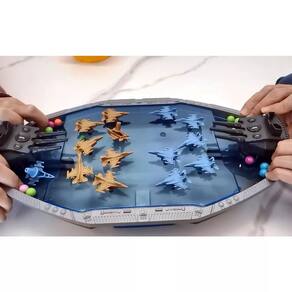 Diversão garantida para a criançada com o jogo de mesa cheio de ação e estratégia! O objetivo é lançar as bolinhas no campo de batalha e acertar os aviões adversários, marcando pontos e desafiando os amigos em partidas emocionantes.