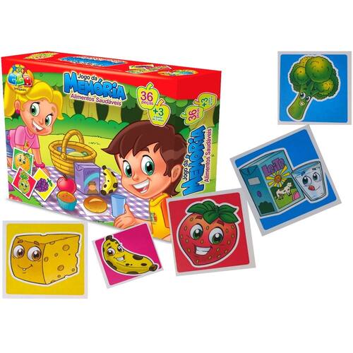 Jogo de Mesa Jogo da Memoria alimentos saudáveis 36 peças Para brincar e se divertir com os pais e com os amigos, ajuda a desenvolver a criatividade e imaginação.