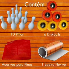 Contém: 1 esteira flexível, 10 pinos e 6 diskballs e Adesivos para pinos.
