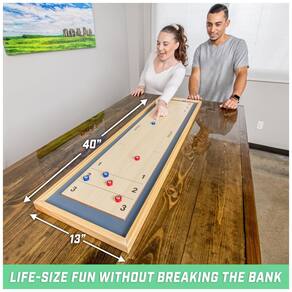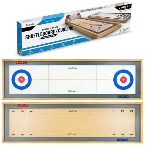 Este jogo de mesa premium oferece duas emocionantes opções de jogos em um único lugar: shuffleboard e curling. Construído com madeira maciça, garante uma superfície completamente plana e lisa para a melhor experiência de jogo possível. Ao contrário de outras marcas que utilizam papel enrolado, este jogo é composto por 8 discos deslizantes que imitam fielmente as quadras autênticos de shuffleboard e curling.