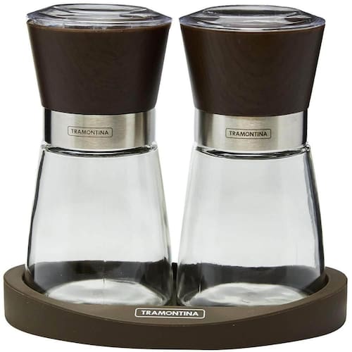 Jogo de Moedores de Pimenta e Sal Grosso Tramontina com Base em Vidro Temperos.