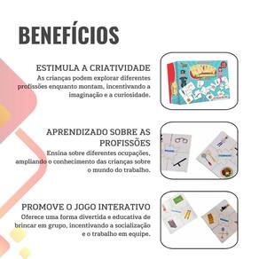 Contém peças coloridas e ilustrativas que representam diversas profissões