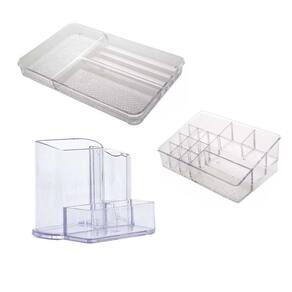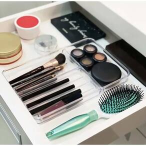 Esse jogo de organizadores Decor Útil é essencial para organizar suas maquiagens, pincéis e bijuterias.