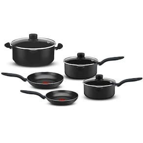 Sofisticação e praticidade na sua cozinha Feito em alumínio com cabo de baquelite, revestimento antiaderente e base Limpa Fácil. A tecnologia Thermo-Sinal avisa o ponto ideal para selar alimentos, tornando o preparo mais facilitado e seguro. As tampas são resistentes e ideais para o uso diário. Contém: 1 Caçarola 24cm - 4,6L 1 Panela 18cm - 1,9L 1 Panela 16cm - 1,4L 1 Frigideira 20cm - 0,9L 1 Frigideira 24cm - 1,4L Especificações: