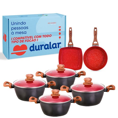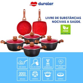 Jogo de Panela 6 Peças Revestimento Cerâmica Red Marble Duralar