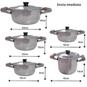 Jogo de Panela Aluminio Polido 5 Peças O Jogo de Panelas Alumínio Premium Polida 5 Peças é a combinação perfeita entre qualidade, sofisticação e funcionalidade para a sua cozinha. Composto por cinco panelas nas medidas Nº16, 18, 20, 22 e 24, esse conjunto atende a diferentes necessidades de preparo, desde pequenas porções até grandes receitas. Fabricadas em alumínio premium polido, as panelas garantem uma excelente distribuição de calor, proporcionando um cozimento rápido e uniforme. As tampas de alumínio ajudam a manter o calor e os sabores, enquanto os cabos em madeira oferecem maior conforto e segurança no manuseio. O acabamento polido confere um toque de elegância, tornando o conjunto não apenas funcional, mas também um item sofisticado para a sua cozinha. Ideal para quem valoriza qualidade e estilo, esse conjunto de panelas é perfeito para o uso diário e para ocasiões especiais. Marca: Não Informado