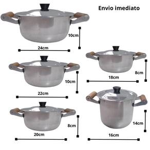 Jogo de Panela Aluminio Polido 5 Peças O Jogo de Panelas Alumínio Premium Polida 5 Peças é a combinação perfeita entre qualidade, sofisticação e funcionalidade para a sua cozinha. Composto por cinco panelas nas medidas Nº16, 18, 20, 22 e 24, esse conjunto atende a diferentes necessidades de preparo, desde pequenas porções até grandes receitas. Fabricadas em alumínio premium polido, as panelas garantem uma excelente distribuição de calor, proporcionando um cozimento rápido e uniforme. As tampas de alumínio ajudam a manter o calor e os sabores, enquanto os cabos em madeira oferecem maior conforto e segurança no manuseio. O acabamento polido confere um toque de elegância, tornando o conjunto não apenas funcional, mas também um item sofisticado para a sua cozinha. Ideal para quem valoriza qualidade e estilo, esse conjunto de panelas é perfeito para o uso diário e para ocasiões especiais. Marca: Não Informado