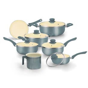 Jogo Panelas com 7 peças Modelo Genebra Baccani Composto por 1 Fervedor, 1 Frigideira, 3 panelas e 2 Caçarolas Cor Azul Metalizado com interno antiaderente cerâmico na cor creme. Livre dos os componentes PTFE e PFOA prejudiciais à saúde Servem para fogões à gás e elétrico. Não servem para fogões à indução Alumínio com Espessura 1,8mm Revestimento Antiaderente Cerâmico na cor creme. Não Gruda. Cabos e alças siliconadas resistentes ao calor Tampas em Vidro Temperado com saída de vapor e bordas em aço inoxidável. Fácil de limpar e podem ir à lava-louças