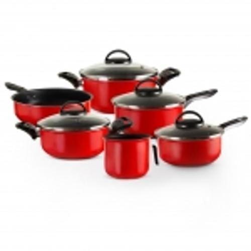 Jogo de panelas 06 peças vermelho antiaderente colorsComposição:- panela 16'- panela 18'- caçarola 18'- caçarola 20'- canecão 14'- frigideira 20' s/ tampaMarca: marpalMaterial: alumínio teflon antiaderenteMaterial das tampas: vidro temperadoMaterial alças e poméis: baqueliteEspessura: 1,0 mmCor: vermelhoImagens meramente ilustrativas. As tonalidades podem variar de acordo com seu monitor ou até mesmo com a percepção dos seus olhosO fabricante pode alterar detalhes de cor nos produtos sem aviso prévioCuidados - as panelas antiaderentes precisam de alguns cuidados especiais, que não são os mesmos que dedicamos a panelas feitas de outro material. e quando bem conservadas são muito resistentes. Usar somente em fogão á gás, em fogo brando Recomendamos sempre untar á parte interna com um pouco de óleo como se tivesse untando uma forma. Cozinhar usando somente espátulas de silicone ou nylon Não deixe sua panela vazia no fogo, evite fogo alto e que a chama incida sobre a lateral da panela, para evitar que o revestimento queime. Espere sua panela esfriar e lave com esponja macia e detergente neutro. Pequenos riscos ou marcas de abrasão são normais e não afetam a desempenho do revestimento antiaderente.