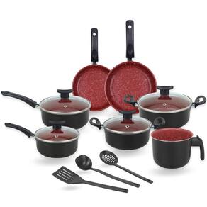 - Design sofisticado e moderno: com acabamento externo preto e revestimento interno vermelho com efeito marmorizado, esse conjunto de panelas oferece elegância e funcionalidade. Ele vai transformar o visual da sua cozinha, trazendo estilo e praticidade para o seu dia a dia.