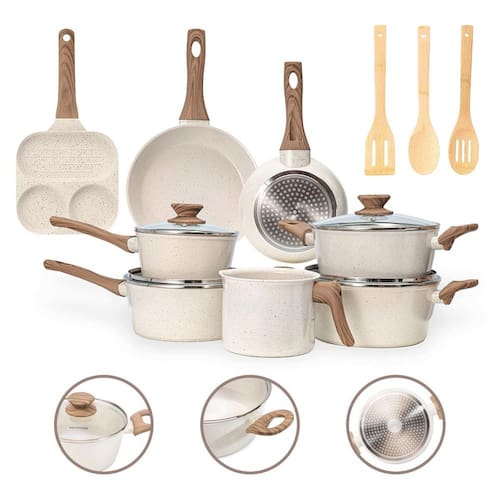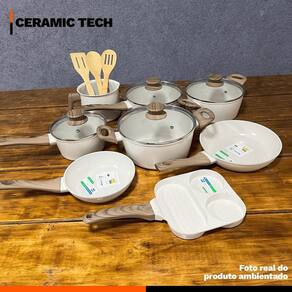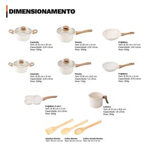 Distribuído por feheros shop Jogo de panelas 11 peças premium indução revestimento cerâmico Atenção As panelas com revestimento cerâmico oferecem propriedades antiaderentes, mas não são 100% antiaderentes. Para melhores resultados, recomenda-se o uso de pequenas quantidades de óleo ou . O revestimento cerâmico é uma alternativa saudável e ecológica, pois não libera substâncias tóxicas quando aquecido. - panelas premium com certificação inmetro nível a - não deixe a chama do fogão pegar nas laterais das panelas - leia atentamente a descrição e siga as recomendações do fabricante Informações do produto - versatilidade incrível: compatível com fogões a gás, elétrico, vitrocerâmico e de indução - durabilidade excepcional: revestimento cerâmico resistente a arranhões e abrasões - cozinha saudável: livre de pfoa e ptfe, ideal para quem busca mais saúde - design premium: acabamento moderno e elegante que facilita a limpeza - economia de tempo e energia: aquece rápido e distribui o calor de forma uniforme - conjunto completo: 11 peças para preparar diversas receitas com praticidade Especificações técnicas - compatível com fogões a gás, elétricos, vitrocerâmicos e de indução - revestimento cerâmico em 3 camadas com espessura de 4 mm - cabo de baquelite com revestimento soft touch, confortável e seguro - permite cozinhar com menos óleo graças ao revestimento antiaderente cerâmico - livre de pfoa e classificado como nível a no inmetro - fundo triplo com indução: estrutura em alumínio com cerâmica, economia de energia - composição de revestimento: 2 camadas cerâmicas + 1 camada resistente a alta temperatura Ficha técnica do produto - panela 16 cm: d 16 cm x a 8,5 cm c 1300 ml p 730 g - panela 20 cm: d 20 cm x a 9 cm c 2250 ml p 1050 g - caçarola 20 cm: d 20 cm x a 9 cm c 2250 ml p 1080 g - caçarola 22 cm: d 22 cm x a 10 cm c 3250 ml p 1350 g - leiteira 14 cm: d 14 cm x a 10,5 cm c 2000 ml p 350 g - frigideira 18 cm: d 18 cm x a 4 cm c 750 ml p 300 g - frigideira 22 cm: d 22 cm x a 4,7 cm c 1450 ml p 500 g - frigideira grill 3 em 1: 18 x 18 cm x a 2 cm p 600 g - espátula vazada de bambu: 30 x 6 x 1 cm - colher vazada de bambu: 30 x 6 x 1 cm - colher para arroz de bambu: 30 x 6 x 1 cm Importante: d= diâmetro, a= altura, c= capacidade, p= peso Antes do primeiro uso - lave com esponja macia e detergente - seque com pano de prato - aplique um pouco de óleo na parte interna - leve ao fogo baixo por 2 minutos - desligue o fogo e espere esfriar - lave novamente e seque Após o uso - evite choques térmicos. Deixe esfriar antes de lavar - lave à mão com água morna, esponja macia e detergente - enxágue e seque com pano macio - para alimentos queimados, deixe de molho e use materiais não abrasivos - não utilize utensílios metálicos, objetos afiados ou produtos abrasivos Itens inclusos no pacote - 01 panela 16 cm 1,3 l com tampa de vidro - 01 panela 20 cm 2,25 l com tampa de vidro - 01 caçarola 20 cm 2,25 l com tampa de vidro - 01 caçarola 22 cm 3,25 l com tampa de vidro - 01 leiteira 14 cm 2 l - 01 frigideira 18 cm 0,75 l - 01 frigideira 22 cm 1,45 l - 01 frigideira grill 3 em 1 - 01 espátula vazada de bambu - 01 colher vazada de bambu - 01 colher para arroz de bambu Todas as fotos são reais dos produtos. Qualquer dúvida, estamos à disposição 01- o produto pode ir ao forno R: não, estes modelos não são adequados para uso no forno devido ao cabo em baquelite. 02- o produto é novo Possui R: sim, o produto é novo e possui de 3 meses conforme as normas do fabricante. 03- é compatível com fogão de indução R: sim, possuem fundo especial que permite o uso em fogões de indução, além de fogões a gás, elétricos e vitrocerâmicos.