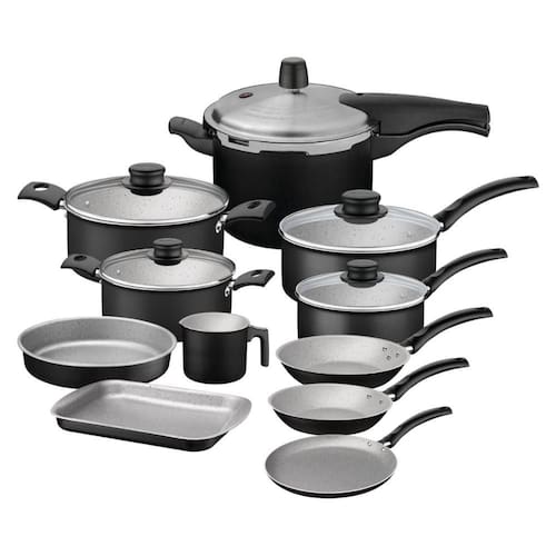Seja qual for a receita que você vai preparar, é essencial contar com itens de qualidade, como o jogo de panelas Tramontina Turim e a Panela de Pressão Vancouver em alumínio com revestimento interno e externo em antiaderente Starflon Max. Aptas para uso no dia a dia, suas peças garantem maior segurança e facilidade na hora preparar suas refeições, pois contam com cabos, alças e pegadores em baquelite e nylon e vem com tampas de vidro temperado com borda de aço inox. Você ainda cozinha de maneira rápida e uniforme, sem que os alimentos grudem em sua superfície e tem facilidade na limpeza, pois o corpo das peças tem produção em alumínio com revestimento em antiaderente Starflon Max. Escolha Tramontina e deixe suas tarefas na cozinha, ainda melhores!