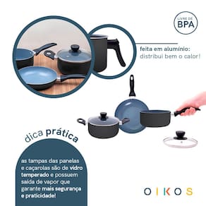 "conheça o jogo de panelas 3 pçs antiaderentes de cerâmica da coleção base da oikos!