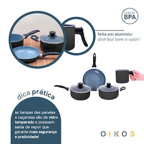 "conheça o jogo de panelas 4 pçs antiaderentes de cerâmica da coleção base da oikos!