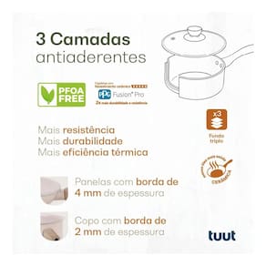 O Jogo de Panelas TUUT 4 Peças oferece praticidade, resistência e design moderno para o dia a dia. Com revestimento cerâmico antiaderente de 3 camadas e fundo triplo, garante melhor distribuição de calor e cozimento uniforme.