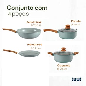 Ideal para quem procura jogo de panelas cerâmicas com wok compatível com indução, resistente, fácil de limpar e com acabamento sofisticado para o dia a dia.