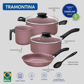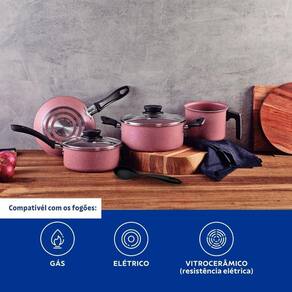 Jogo De Panelas 4 Peças Rosa Linz Antiaderente e Colher Tramontina