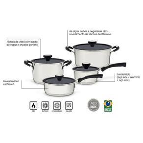 Jogo de Panelas Solar Ceramic 4 Peças em Aço Inox Fundo Triplo com Revestimento Interno Cerâmico Grafite Tramontina - Conteúdo do Jogo