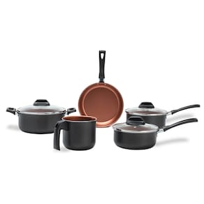Sua estrutura em alumínio garante aquecimento rápido e uniforme, enquanto o revestimento interno antiaderente Pro-Flon, com classificação A (ótima) e livre de PFOA, permite cozinhar com menos óleo e facilita a limpeza. O jogo de panelas conta com: