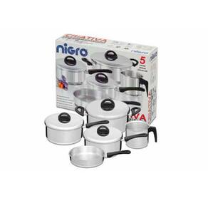 Jogo de panelas Nigro Criativa 5 peças polido com caçarola.